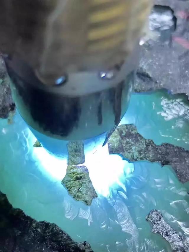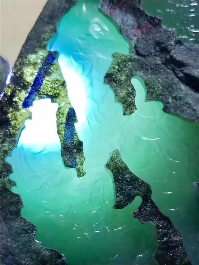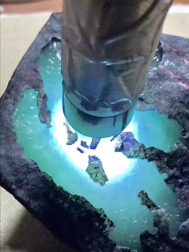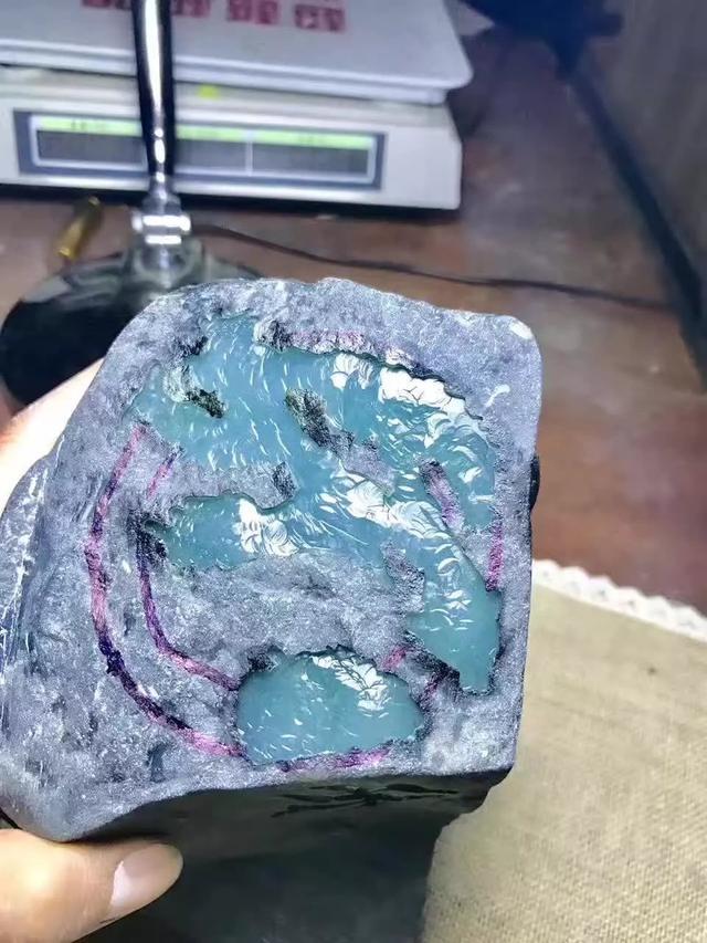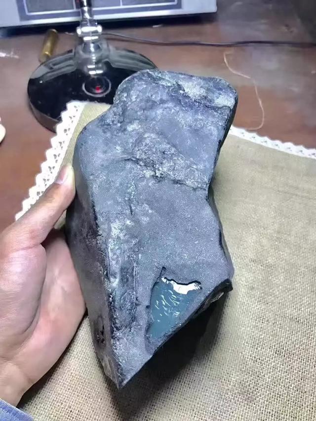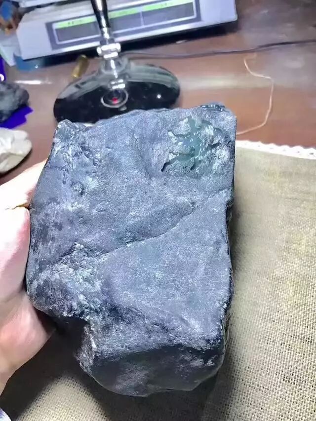 下图是帕敢黑乌沙的料子,已开窗料,重:5.7公斤,已经有多处开窗,没变种肉质细腻,这个料子最重要的一点就是,开窗面的底部,打灯仍然有种水表现。