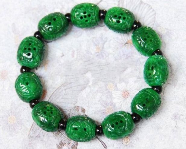 铁龙生翡翠最差的应该是颜色为黑绿色、颜色分布不均匀,且晶体颗粒很粗的,只能达到豆种翡翠,这样的铁龙生翡翠往往杂质较多,需要经过酸洗除去杂质。这样的铁龙生翡翠适合于造型单一、雕工简单的挂件或手链串珠,如路路通、领管等。价格在一两百到几百元间不等。