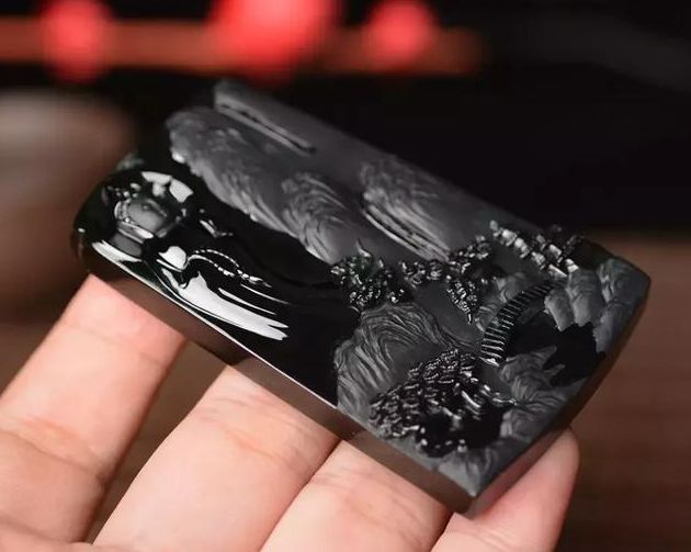 墨翠的雕工也是体现墨翠价值的一个方面。因为不透明而且又是黑色的缘故,墨翠就成了用来体现优质雕刻工艺的上等材料。