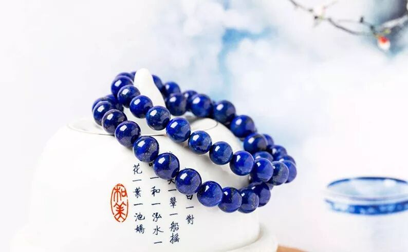 青金石颜色深蓝,或者青绿,宛如湛蓝的天空,深沉而神秘。青金石有助于治疗失眠、晕眩、头痛和高血压等症状,舒缓人的情绪和视力紧张,还能够改善气管、喉轮和呼吸道疾病。同时,青金石还能够护身辟邪。