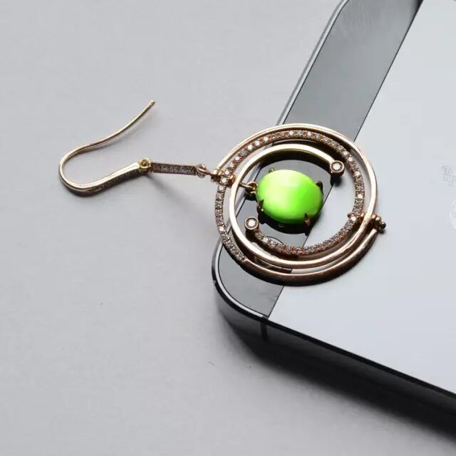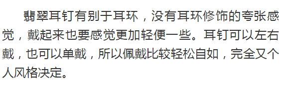 纯粹的绿色,始终让人看上去充满生机,周边包裹着的一圈白金色,也让整体显得不再黯淡。再搭配上一套黑色礼裙,低调奢华点缀在耳尖,时尚复古潮流自然也就轻松掌握。
