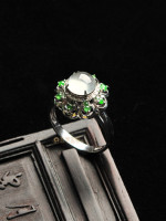 ⒊年轻的女士佩戴镶紫色、红色或绿色小粒翡翠的K金戒指,更能展示肌肤的柔美。