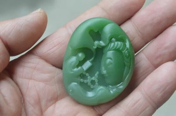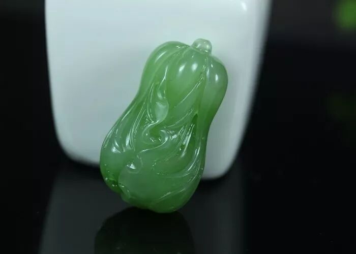 和田碧玉细润柔和,打光不透,细看里面有自然形成的条纹,黑点颇多,呈芝麻点状。以“菠菜绿”“猫眼绿”“玻璃绿”等颜色为上品。