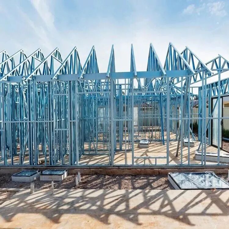 轻钢别墅建筑。底层轻钢房屋屋面采用冷弯型钢的三角桁架结构,主要墙体采用冷弯型钢的承重剪力墙结构,各组成构件在铺完定向结构性板材及石膏板之后,形成了非常坚固的“板肋结构体系”,而且冷弯薄壁型轻钢受力时具有一定的延性,所以比起传统砖混结构,这种结构体系有着更强的抗震及抵抗水平和在的能力,适用于抗震烈度为8度的地区。