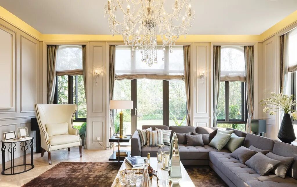 走进别墅,里面别有洞天:一楼是车库兼休闲娱乐室,还摆着一张大台球桌,沿着楼梯上到二楼、三楼,一盏水晶吊灯从尖屋顶垂下,把整个中厅及两边的卧室映衬得富丽堂皇。