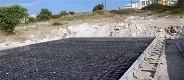 ▼首先是基础处理。不管是砖混结构还是框架结构,地基肯定要做好。下面就是做好的钢筋混凝土底板基础,40厘米厚,各种管线预埋其中。