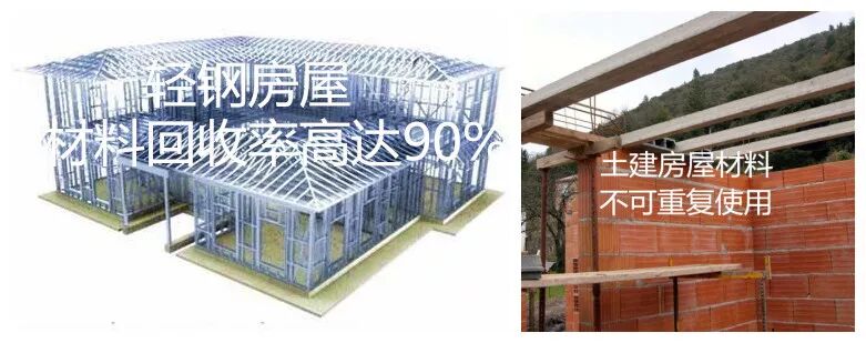 砖混房屋的使用面积一般在75%左右,而轻钢结构房屋使用率高达90%以上。