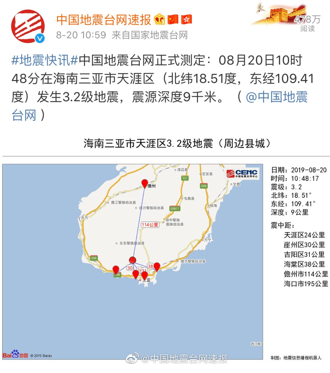 这是三亚一天内发生的第2次地震