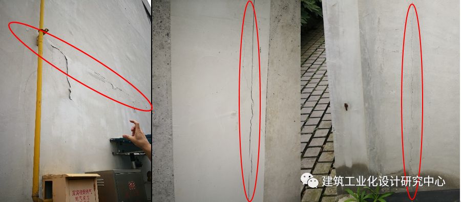 调查组查看了宿舍楼外立面、1~3层部分房间,全面调查了楼面板、柱及柱端节点、梁柱节点、主次梁节点、非承重PC墙板及墙板间节点、楼梯间等部位,调查结果详图21~22。