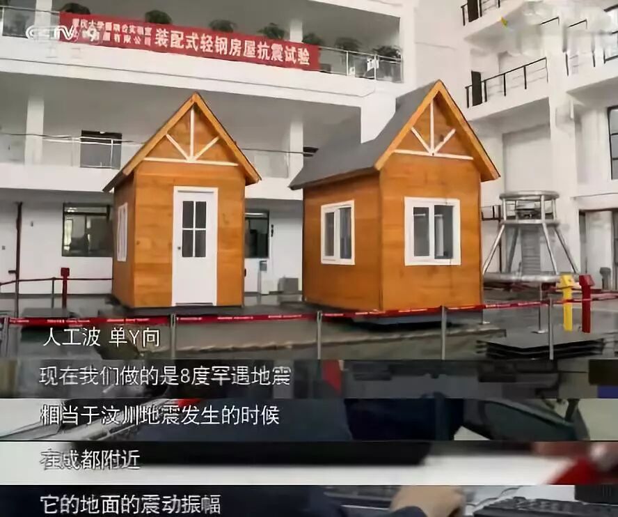 在这个测试中,轻钢绿色装配式建筑的主体结构是柔性结构,整体性强,试验结果完全经受住了考验,完美通过。
