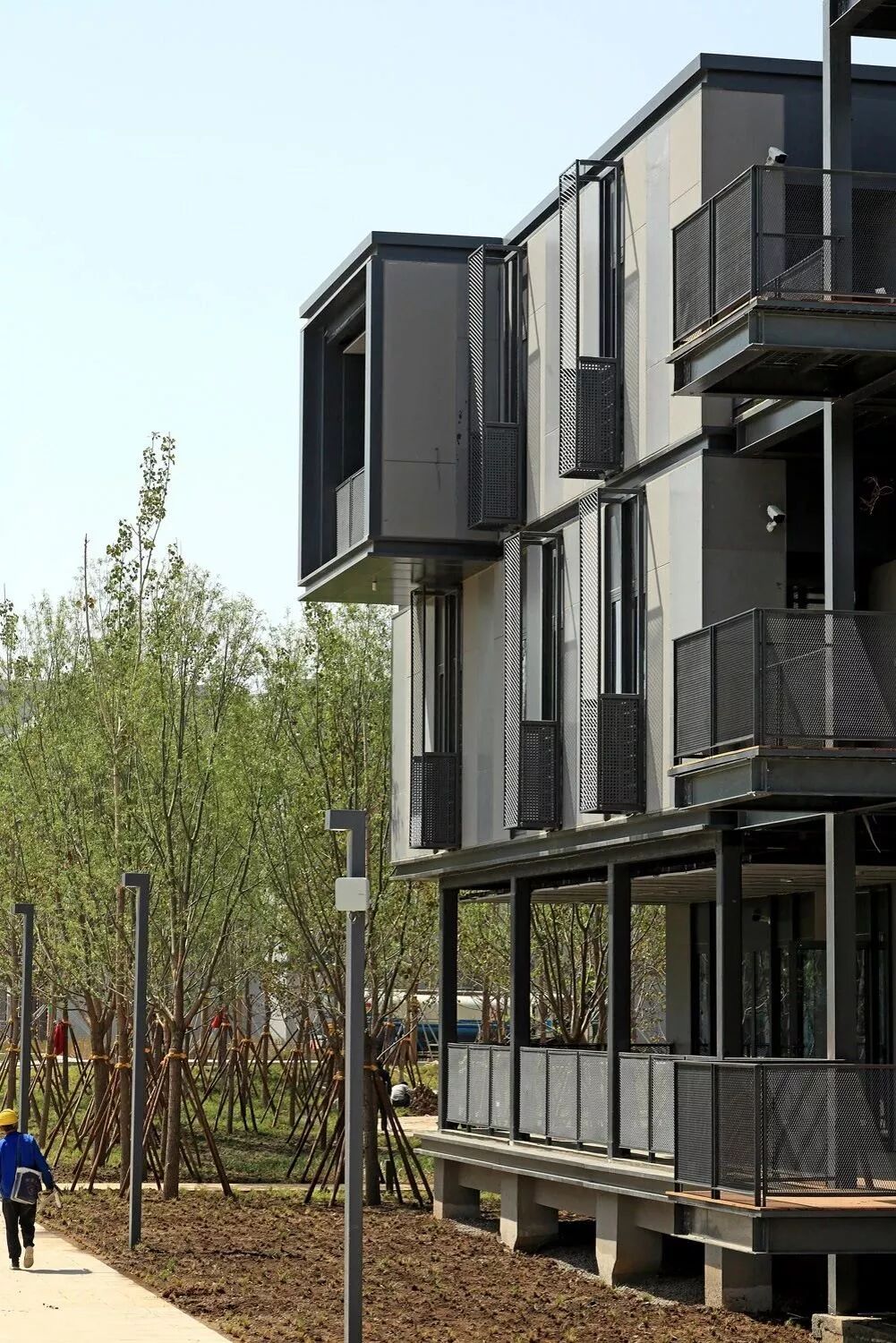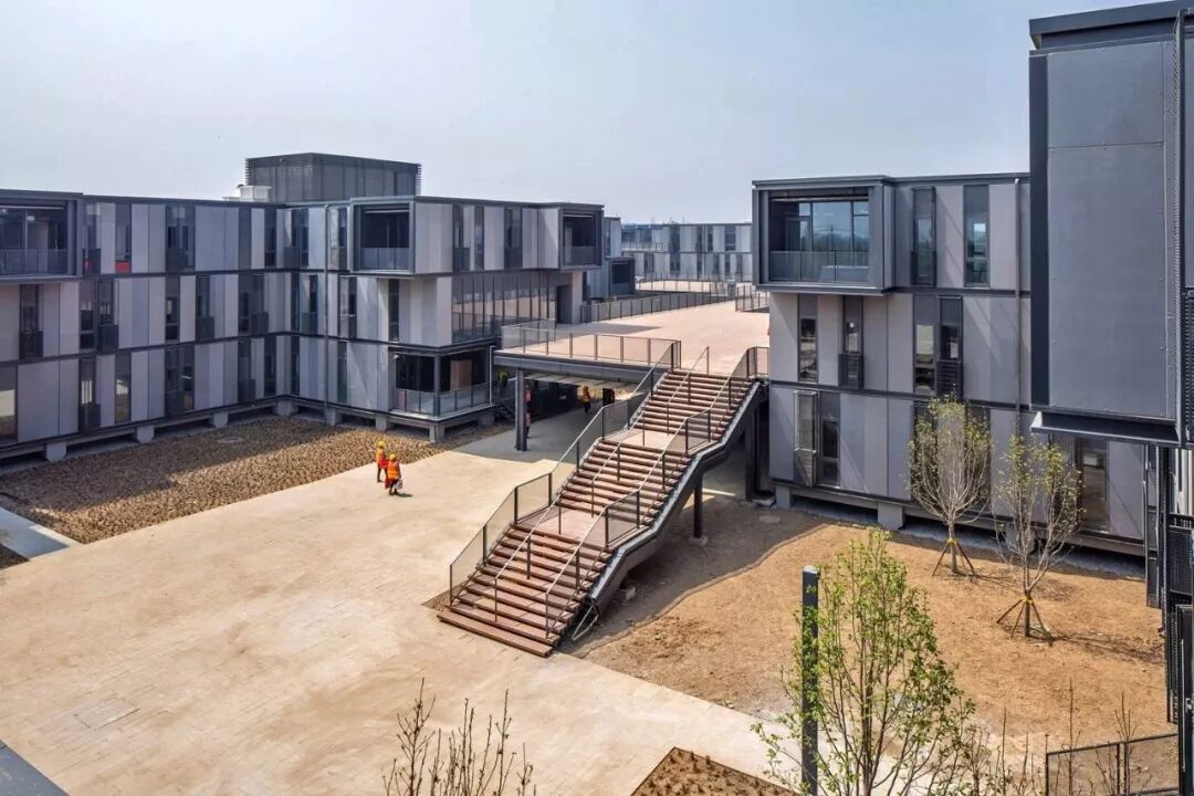 在材料方面,则选取水泥压力板、金属网与玻璃作为建筑立面材料,标准化分隔,便于高效生产与施工。同时,金属网种植绿色爬藤,以垂直绿化营造园区生态环境。在雄安立起的将不仅仅是一座新城,更是绿色发展的理念。