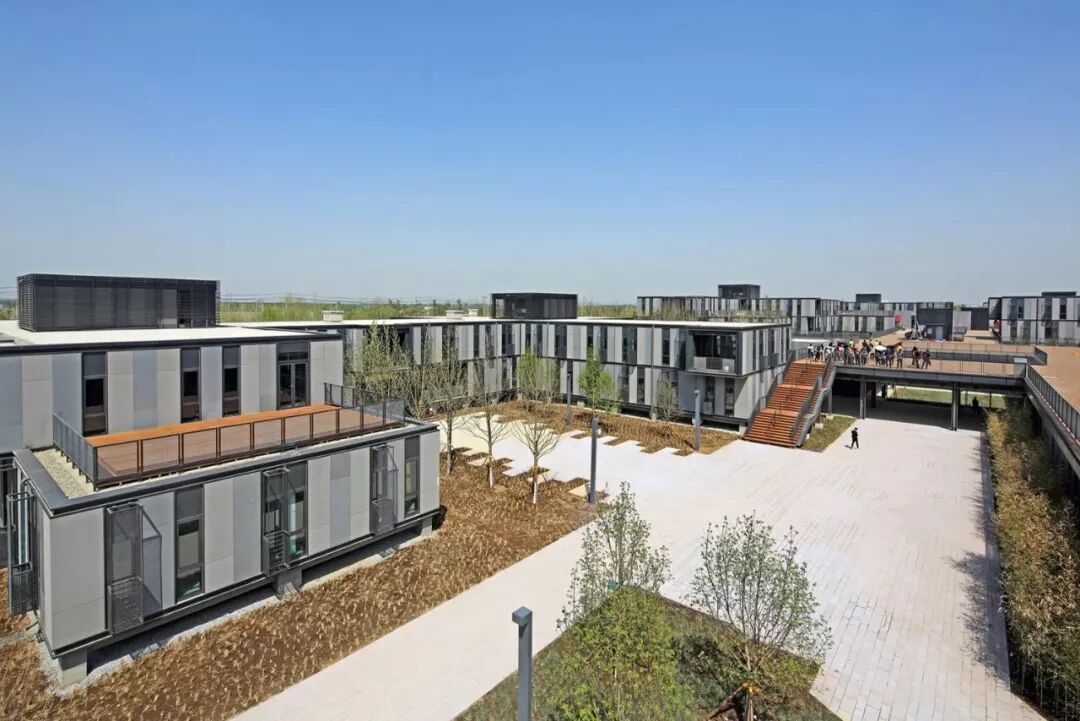 这个看上去不起眼的园区是雄安新区首个城建项目,也是新区第一座“被动式超低能耗绿色建筑”,整个建筑群均采用PC、轻钢别墅、集装箱等装配式建筑,大部分地面采用“大巨龙”PVC弹性地板,蕴含许多创新的绿色元素。
