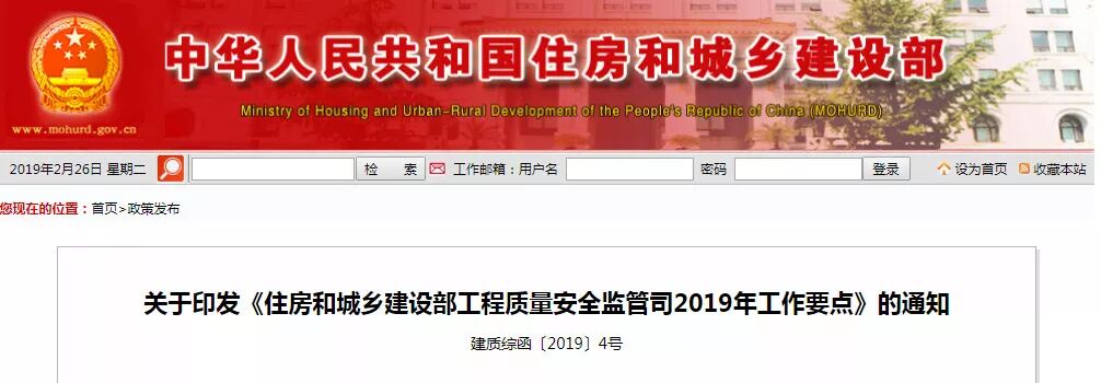 住房和城乡建设部工程质量安全监管司2019年工作要点