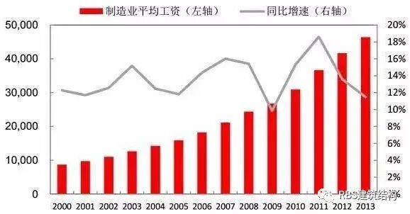 ▲ 我国制造业平均工资涨幅