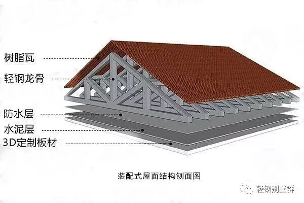 屋顶采用轻钢龙骨做架构,加上防水层、水泥层和3D定制板材组成,不仅环保、无污染,而且具有很好的防水效果。该墙体可用来阻隔热度,达到隔音效果,能有效阻隔温度,真实地实现冬暖夏凉。