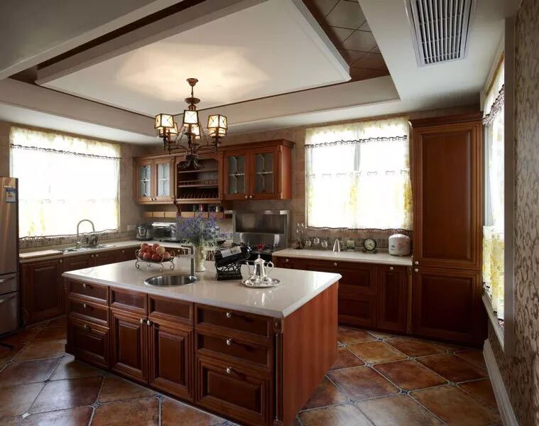 厨房是非常典型的美式,清一色的胡桃木,浓郁的复古气息。也和他们夫妻俩属性一样,理性稳重,有一定的文化层次,识大体,却也固执守旧,不爱变通。