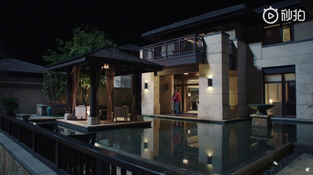 从别墅外观上看,有中式庭院的既视感。不仅有超大水池、凉亭,还有一棵高大的桂花树,古色古香,为苏明玉和石天冬花前月下提供了浪漫的意境。