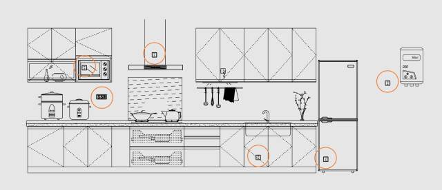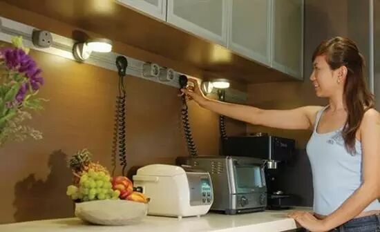千万不要按照已有的家电来设计插座和开关,家电是越用越多,后来添置的。例如厨房,预留多个一对一开关的插座是比较合理的设计,适用于各种后来添置的厨电。