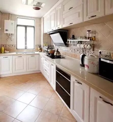 很多人在厨房装修时,瓷砖只贴到半墙。但其实,贴全墙的瓷砖,才有效防止油烟。贴了瓷砖不会让墙壁变黑,而且容易清洗,不怕水。用清洁剂轻轻一喷一擦解决。