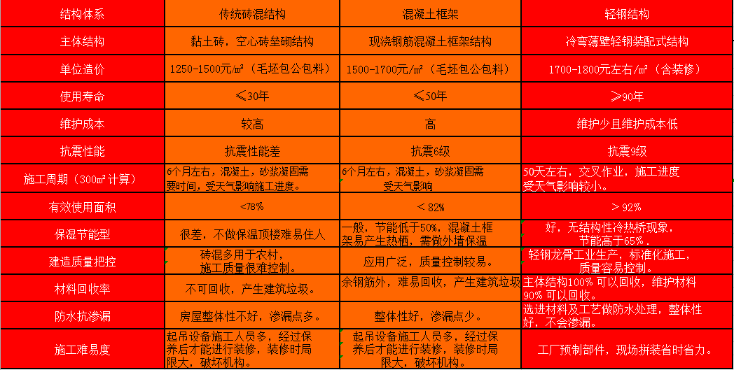 轻钢结构墙体厚度小,比砖混结构可以增加20%有效使用面积