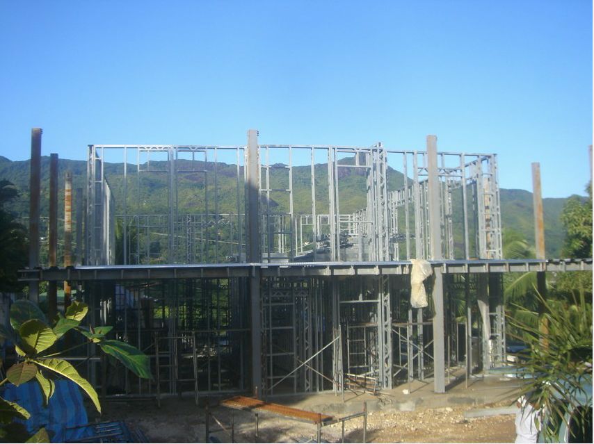 轻钢别墅的主要材料是由热镀锌钢带经冷轧技术合成的轻钢龙骨,其使用寿命长,耐腐蚀能力强。