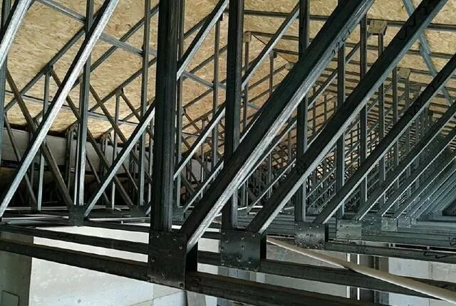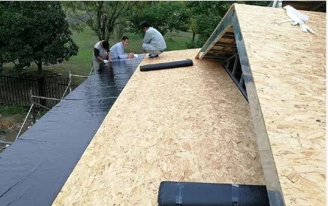 ▼欧松板钉装完成后,还有做一层挤塑聚苯板隔热层、呼吸纸防水层然后还需要在一层用保温装饰一体板装饰。