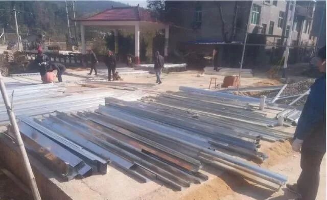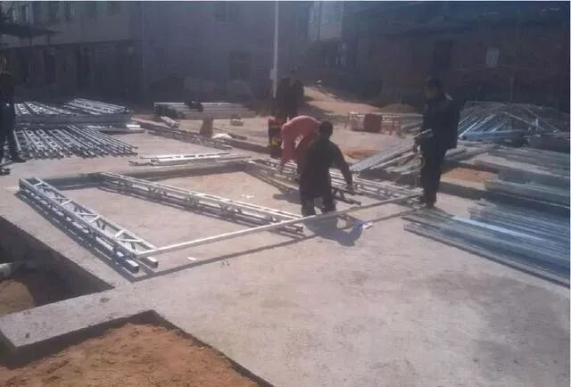 ▼工厂生产好的钢结构运送到施工现场,开始搭建