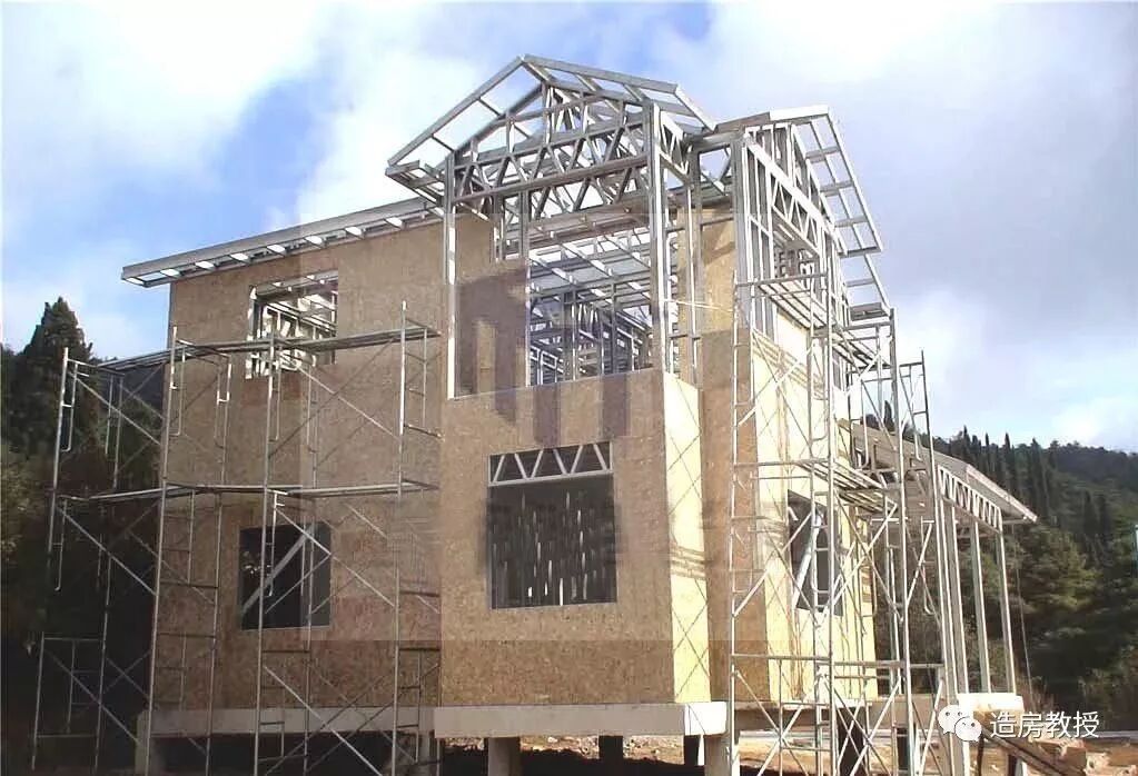 国外轻钢别墅墙体多采用osb板配套保温隔音棉结构,在国内由于传统思想的束缚,对填充的玻纤棉保温、隔音、防火等性能心存怀疑,于是衍生出这种新的工艺,采用现浇泡沫混凝土来替代保温隔音棉填充墙体。