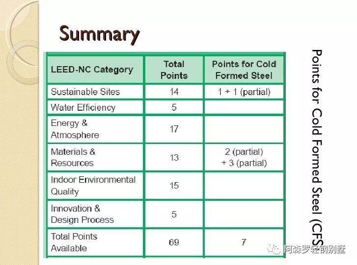 冷弯成型钢/轻钢(CFS)也是一种高效的建筑材料,其高可持续性评级证明了这一点。根据钢框架联盟(Steel Framing Alliance)的资料,冷弯成型钢/轻钢(CFS)被视为能够满足最高的可持续性标准。钢在所有主要的绿色建筑标准和评估程序中都得到认可,包括美国住宅建筑的国家绿色建筑标准(National Green Building Standard ICC-700)、美国商业建筑ASHRAE 189.1标准,以及美国绿色建筑委员会(Green Building Council)LEED的认可,LEED涵盖了所有类型的建筑。