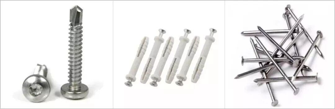 膨胀螺钉:遇有钢钉及射钉都无法钉入的坚硬墙面,可以采用膨胀螺栓固定。