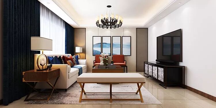 居家环境整体色系舒心优雅,空间以米白、 浅紫、蓝灰三色调为主,线条与块面独立又相近,融于整体结构和气质,局部跳跃蓝色氤氲出宁静感,同时也将新东方之美引至更深的境地。