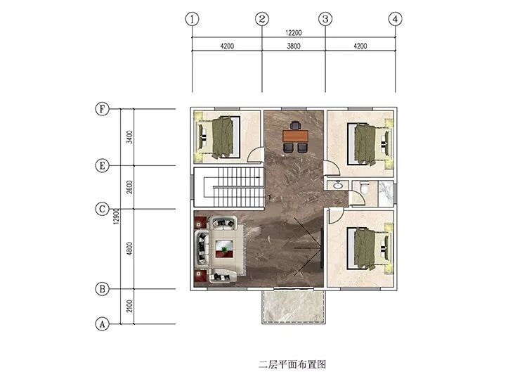 首层2房2厅1厨1卫1梯间公共功能空间使用面积大,极大的推动家庭凝聚感;二层3房1厅1书房1梯间,整体布局以舒适放松为主,舒适度爆表。