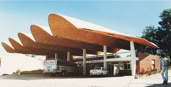 当时的数字还不很成熟,为了让这巨大的悬挑成立,托罗哈通过结构试验单元做了几次试验,最终将拱壳的纵向截面选为双曲抛物线,这样对受力相对最为合理。