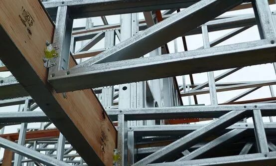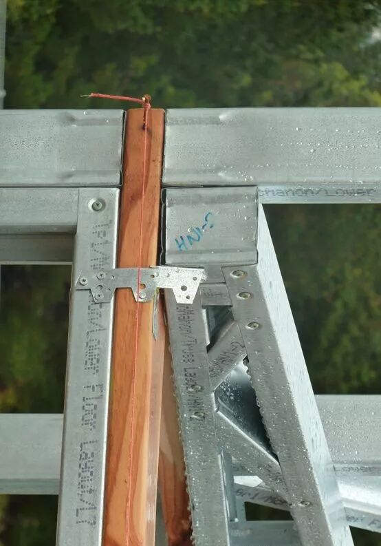 在澳洲有一些项目里大家可以看到各种材料,如上图槽钢与木规格材的组合使用,既提高了组合构件的强度,有提供了方便连接位置。国内这么处理的不多,大家总是怕材料多了体系杂,我感觉不是,合适的材料用在合适的地方就是好的设计。大家是造房子,而不是为了轻钢而轻钢!