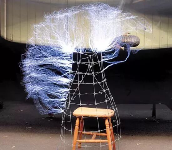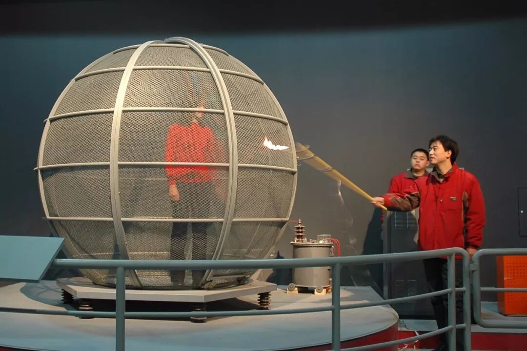 法拉第笼是用电磁学理论的奠基人法拉第的名字来命名的,将一个金属做成的巨大的笼子,通以高压电后,人在里边接触笼体但不会受到点击的伤害。这个设备几乎在每个城市的科技馆里都能见到,用于向市民普及屏蔽原理。