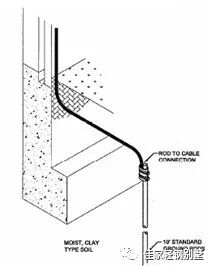 另外,在设计图纸中,不能泛泛而谈“利用建筑物基础钢筋做自然接地体”。前面已经提到,轻钢结构建筑物在基础施工时需预埋地脚螺栓,加垫片后才能和钢柱相连。