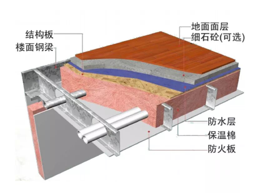 所用的材料是定向刨花板,水泥纤维板,以及胶合板, 在轻钢楼面上每平方米可承受316~365公斤的重量,二楼或二楼以上的楼层站上很多人也不用担心会塌,因为它的承重力要优于传统房屋的,不仅如此轻钢房屋的楼面结构体系重量仅为国内传统的混凝土楼板体系的1/4~1/6,但其楼面的结构高度将比普通混凝土板高0.1~0.12米。