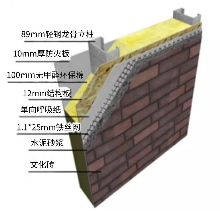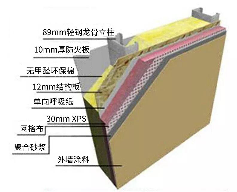 a.墙体填充玻璃纤维面,外墙覆盖保温板,具有良好的保温、隔热、隔音功能。