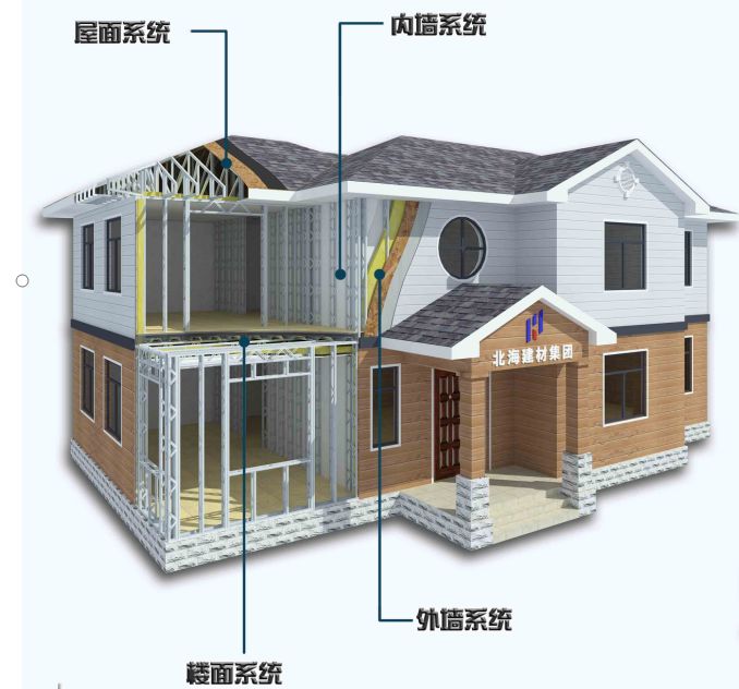 轻钢节能抗震别墅体系,轻钢结构骨架与内外维护板材,通过M型钢件(北海建材集团专利)连接,形成了非常坚固的“板肋式结构体系”,这种结构体系有着更优越的抗地震和抵抗水平荷载的能力,让业主在不可预测的地震、飓风等自然灾害面前安枕无忧。