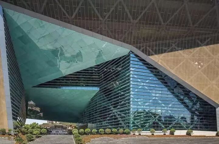 除了注重“外表”之外,成都博物馆新馆还练就一身的“金刚铁骨”,总用钢量约1.5万吨,由不规则三角形和多面椎体构成。