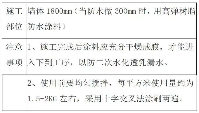 2.3 防水涂料采用十字交叉法涂刷次数不少于两遍;
