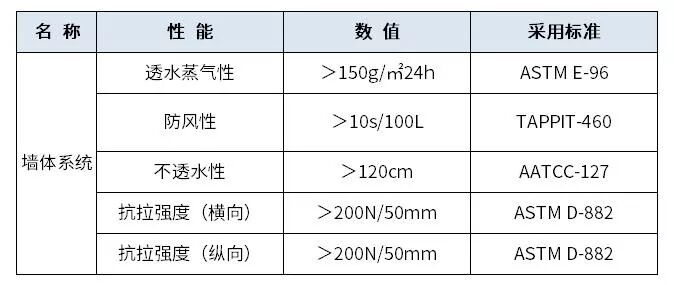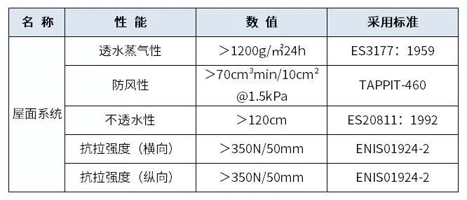 防水透气膜 主要技术参数