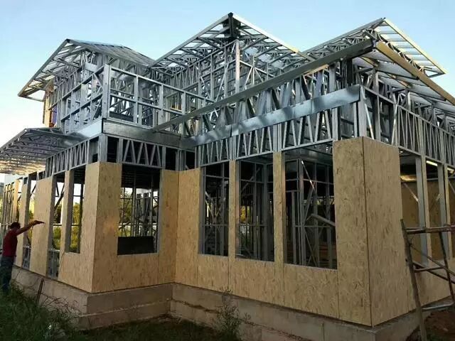 轻钢别墅屋面系统是由屋架、结构OSB面板、防水层、轻型屋面瓦(金属或沥青瓦)组成的。 轻钢结构的屋面材料有多种,为保障防水技术提供了前提。所以在选择建轻钢别墅的时候一定不能偷工减料,要加强材料的进场控制和注重封缝防水材料的质量控制,材料是防水的基础,如果材料没有到位的话,后续的防水工作很多都会成为空谈!