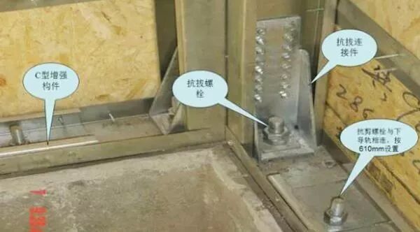 下图墙体与地基的连接处,进行抗剪抗拔处理,这也是抗震防风的主要原理。