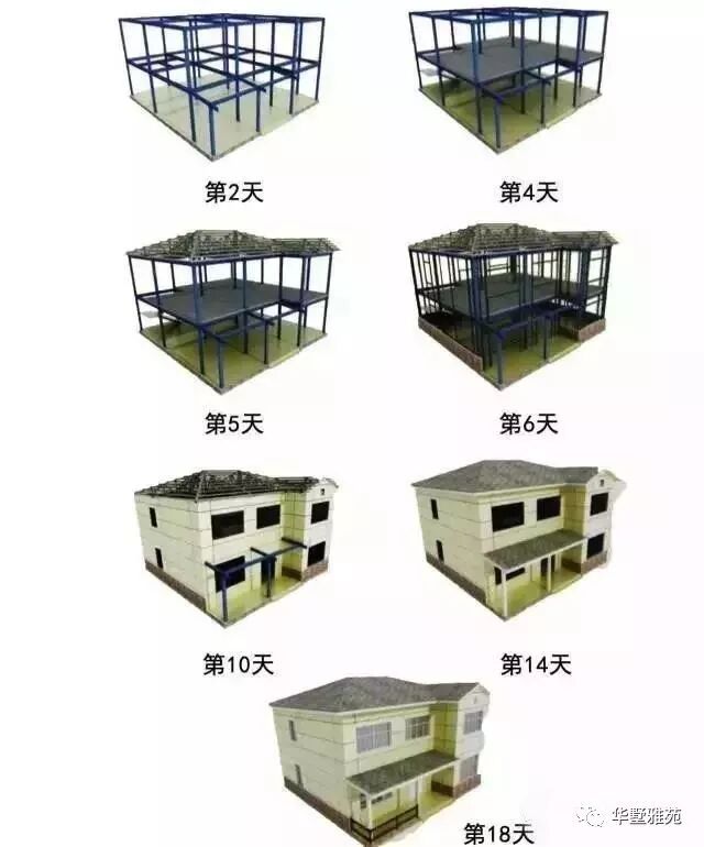 外部结构为干式施工,组装迅速精密度高,工期约1—2个月即可完工,外墙本身具有多种样式可供选择,不需像传统混凝土建筑需再行铺贴壁砖,减少成本浪费。