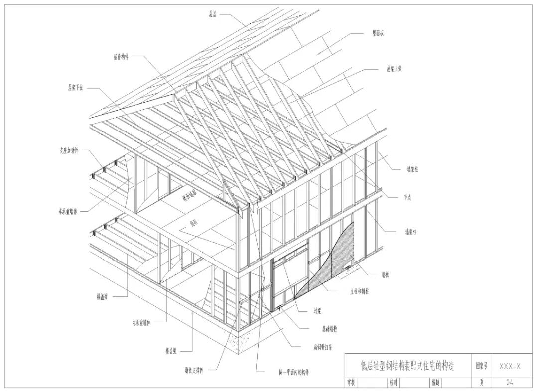 图集适用于带地下室的两层或局部三层以下的独立或联排轻型钢结构装配式住宅。其平面尺寸最大长度为18m,宽度为11m,承重墙高度为3m,屋面坡度取值宜在1:4~1:1的范围内,斜挑梁悬梁尺寸最大为300mm,其他悬梁构件悬挑最大尺寸610mm。