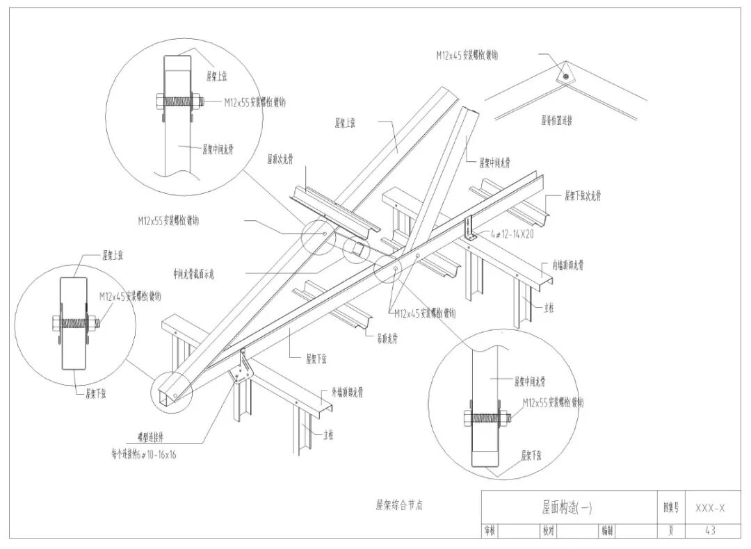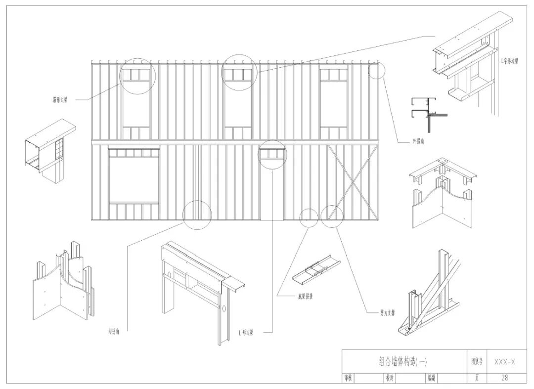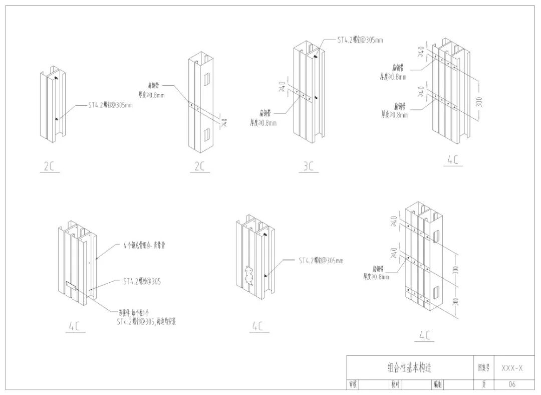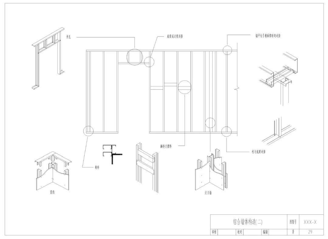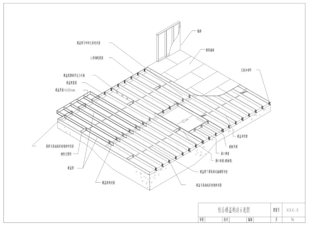 图集组合梁、柱连接方式采用焊接和紧固件连接,其墙面、楼面及屋面构造所选用的板型连接件方式为紧固件连接。
