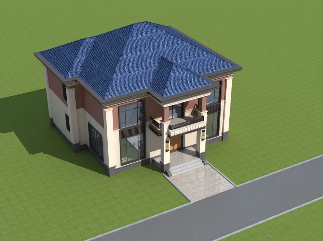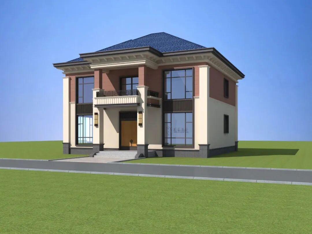 窗户设计采用现在流行的多开式门窗,防蚊防蝇提高夏季居住舒适度,一楼采用大理石玻璃铺门口楼梯,二楼挑空阳台增加生活适用性,也更适合农村的生活习惯。二楼顶部花式吊顶搭配整体别墅风格,大气有内涵。
