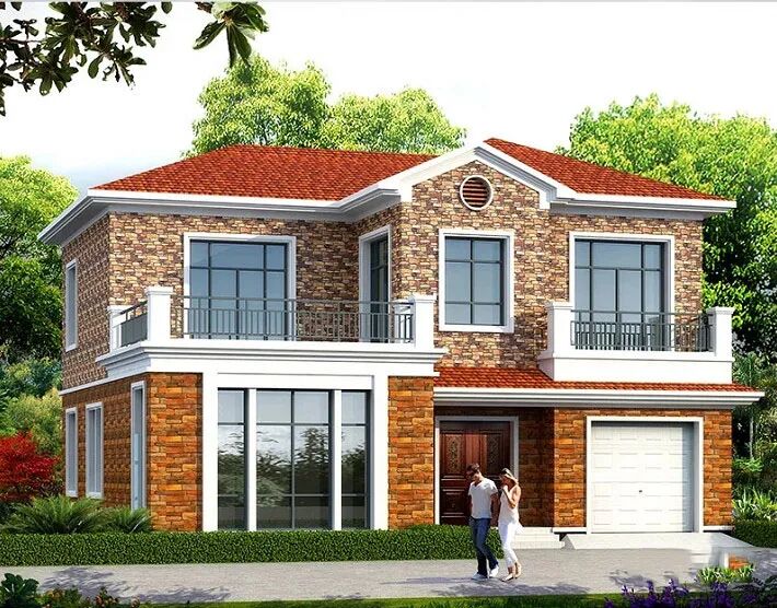 主体外墙文化石,显得非常精致,客厅大大的落地窗,阳光通透,时尚又美观,红色的屋顶与整体造型搭配交相辉映,让人眼前一亮。