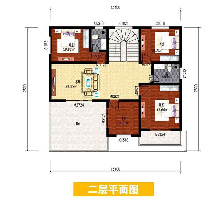 13.4米×12.6米二层乡村别墅,建筑理想的家